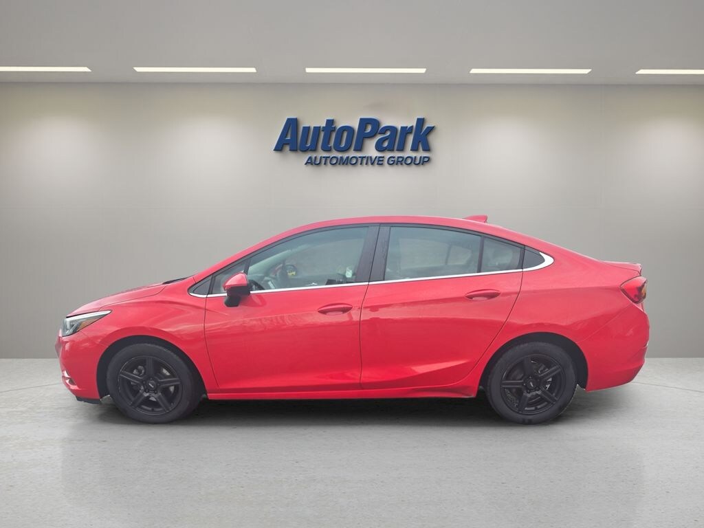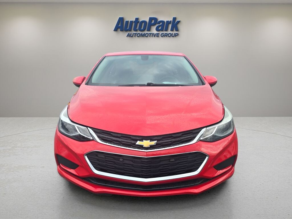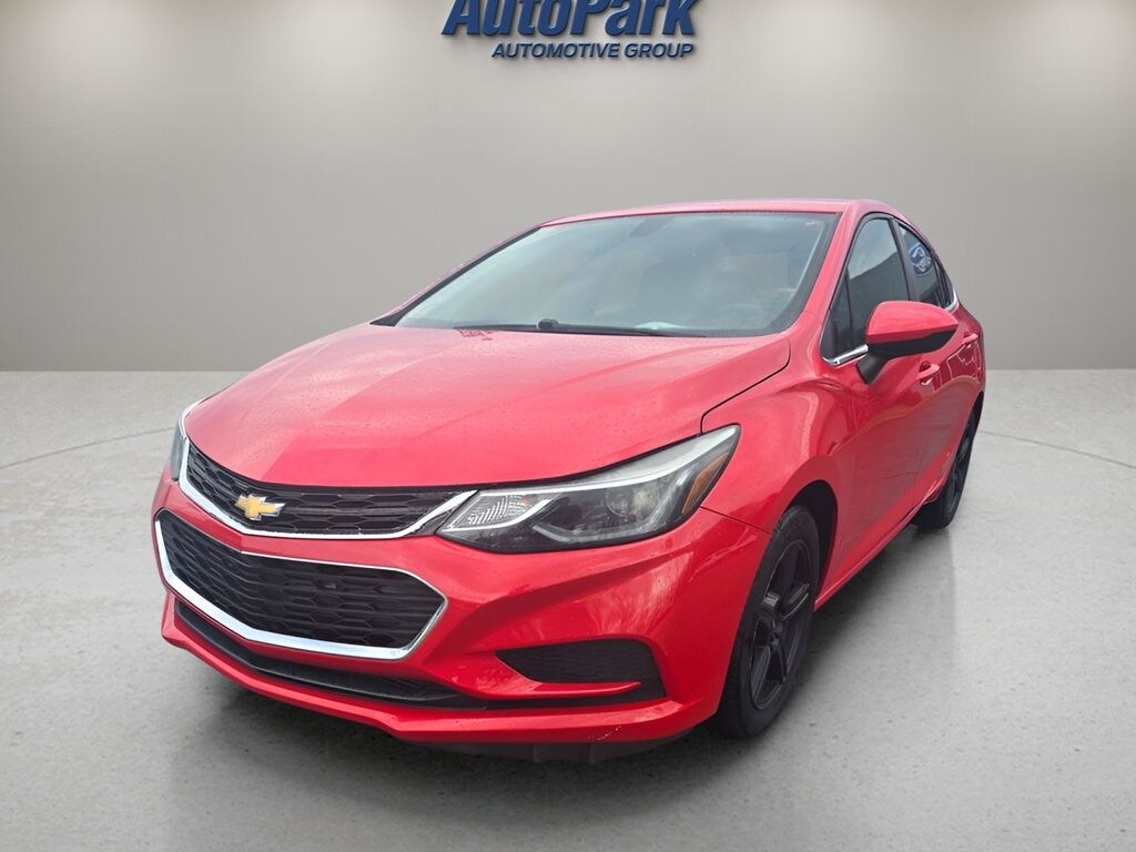 Vehicle Is Equipped With Preferred Equipment Group 1SD, Cruze LT, 4D Sedan, 1.4L 4-Cylinder Turbo DOHC CVVT, 6-Speed Automatic, FWD, Red Hot, Jet Black w/Cloth Seat Trim, 16" Aluminum Wheels, 4-Wheel Disc Brakes, 6 Speaker Audio System Feature, 6 Speakers, ABS brakes, Air Conditioning, Alloy wheels, AM/FM radio: SiriusXM, Apple CarPlay/Android Auto, Brake assist, Bumpers: body-color, Cloth Seat Trim, Compass, Delay-off headlights, Driver 6-Way Manual Seat Adjuster, Driver door bin, Driver vanity mirror, Dual front impact airbags, Dual front side impact airbags, Electronic Stability Control, Emergency communication system: OnStar Guidance, Exterior Parking Camera Rear, Front anti-roll bar, Front Bucket Seats, Front Center Armrest, Front Passenger 2-Way Manual Seat Adjuster, Front reading lights, Front wheel independent suspension, Fully automatic headlights, Heated door mirrors, Illuminated entry, Knee airbag, Low tire pressure warning, Occupant sensing airbag, Outside temperature display, Overhead airbag, Panic alarm, Passenger door bin, Passenger vanity mirror, Power door mirrors, Power steering, Power windows, Radio data system, Radio: AM/FM Chevrolet MyLink w/7" Touch-Screen, Rear seat center armrest, Rear side impact airbag, Rear window defroster, Remote keyless entry, Security system, SiriusXM Satellite Radio, Speed control, Split folding rear seat, Steering wheel mounted audio controls, Tachometer, Telescoping steering wheel, Tilt steering wheel, Traction control, Trip computer, Variably intermittent wipers, and Voltmeter.